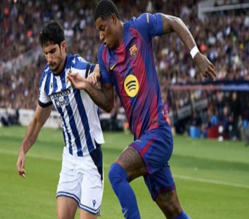 雷速体育10月5日宣 西甲第8轮,巴塞罗那客场对阵塞维利亚。上半场补时阶段,拉什福德为巴萨扳回一城,打入个人西甲首粒进球。