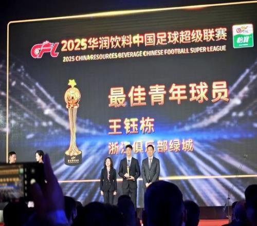 工人日报客户端12月12日电(记者李元浩)12日晚,2025赛季中国足球职业联赛颁奖会在上海举行。这是继2019年后中国足球职业联赛首次举行颁奖活动,每一项荣誉都是对坚持的加冕,每一座奖杯都闪耀着热爱的光芒。在备受瞩目的2025赛季中超联赛最佳青年球员评选中,来自浙江俱乐部绿城的国脚王钰栋毫无悬念当选。拿到这座象征荣耀和期待的奖杯,王钰栋有什么感受?对于未来的职业生涯有什么期待?对于外界关注的留洋问题又作何回应?